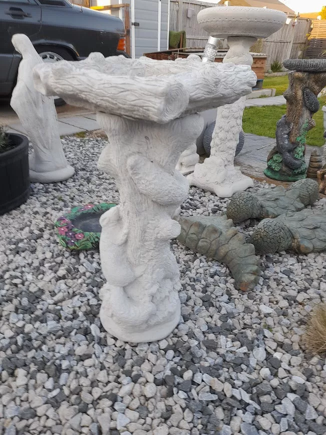 A beautifully crafted stone birdbath reacering a squirrel design, perfect for Invite feathered friends to visit with one of elegant birdbaths attracting birds to your garden while adding an elegant touch.A tranquil centerpiece for birds. Bringing motion and life to your garden with a charming birdbath.